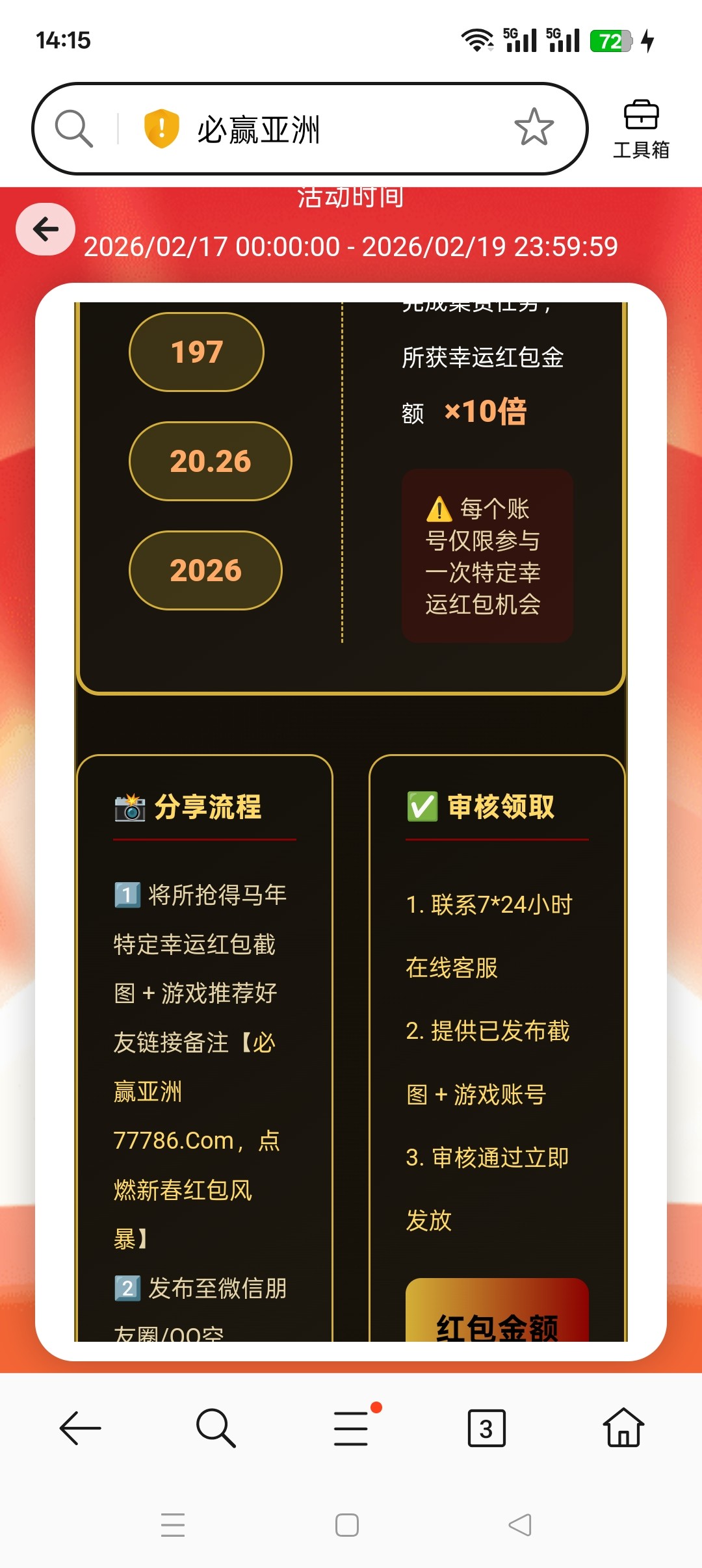 197.am有号的大家去抢红包啊,每天三次可以抢很多天 运气好,10倍加送