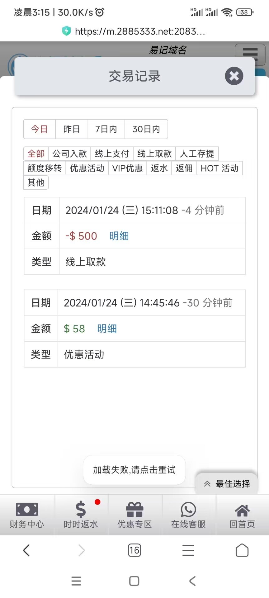 两个号都送了38,都打上去了,这个月终于白嫖到了一次,重名都出款了,庄狗真题tm的傻逼