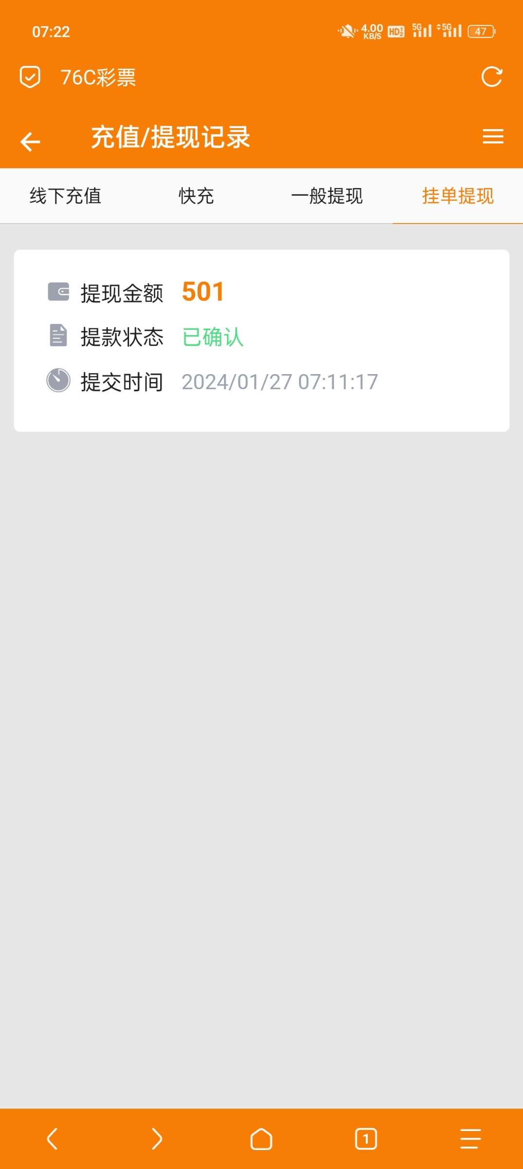 注册秒了47,打到了100,还有40来块的邮箱彩金没领,提100,3分钟到账,一会剩下的40多再提100,美滋滋啊