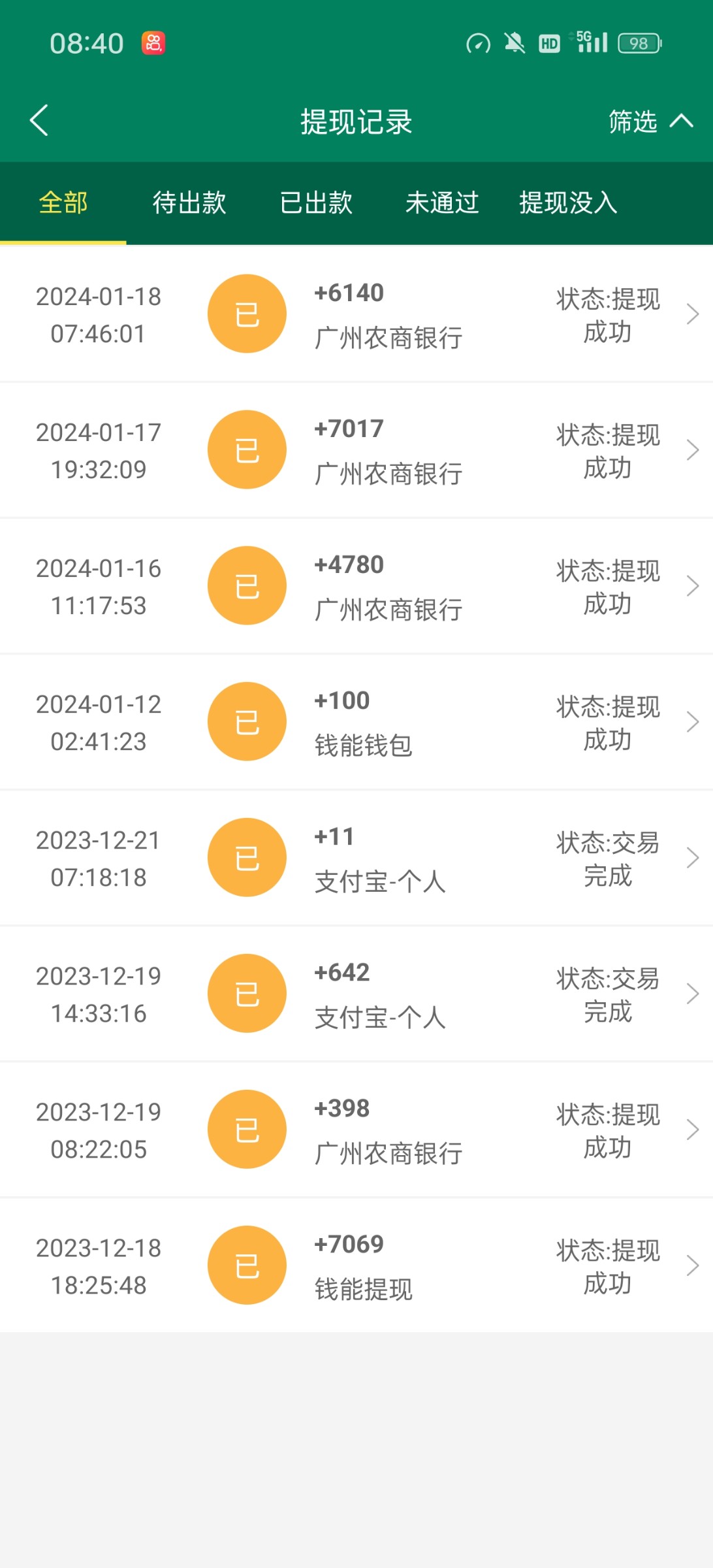 打电话回馈了8块,打到118提款100一直出款中,问了客服让提供手持,也没有退回,剩余的18最高打到了500,平时充值都是稳定的几毛钱一注,这辈子从来pg都没压过10块