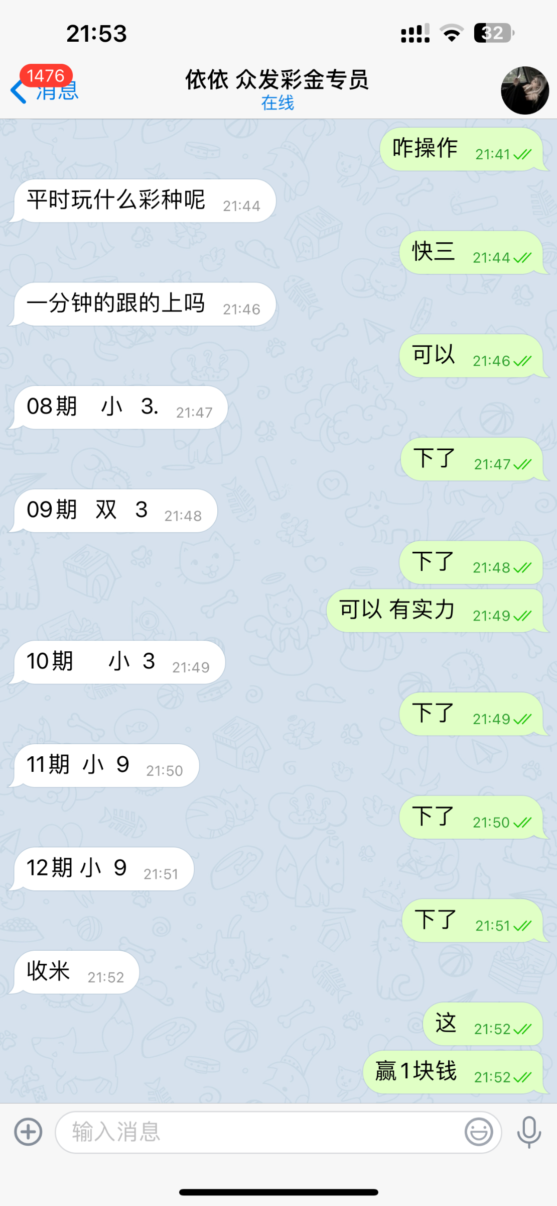太有实力了,带单赢了1块钱收米了,然后送了10彩金