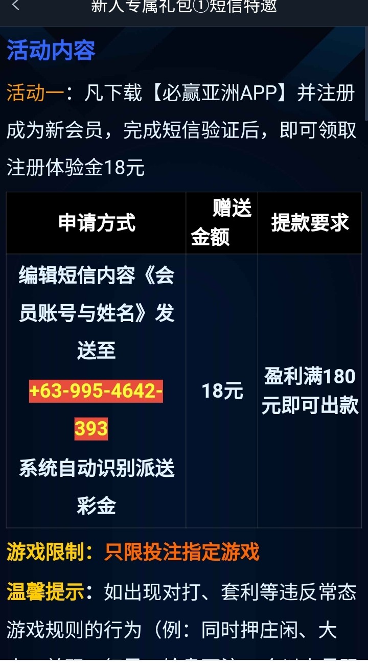 注册发短信符合送18,180提