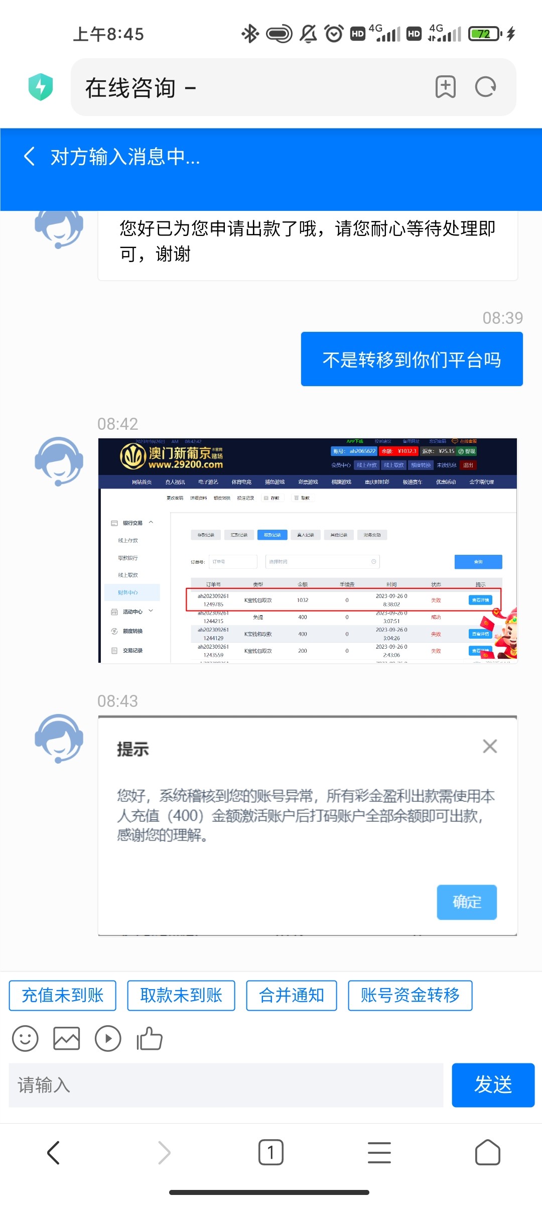 不行啊,我找客服转移他直接给我出款了,能出款还要他