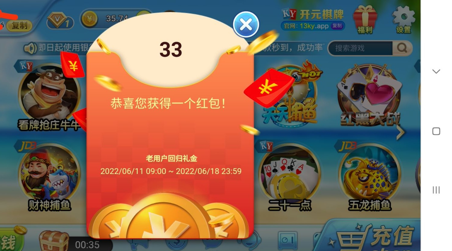 老用户部分有回馈红包8+,应该是充值过的才有