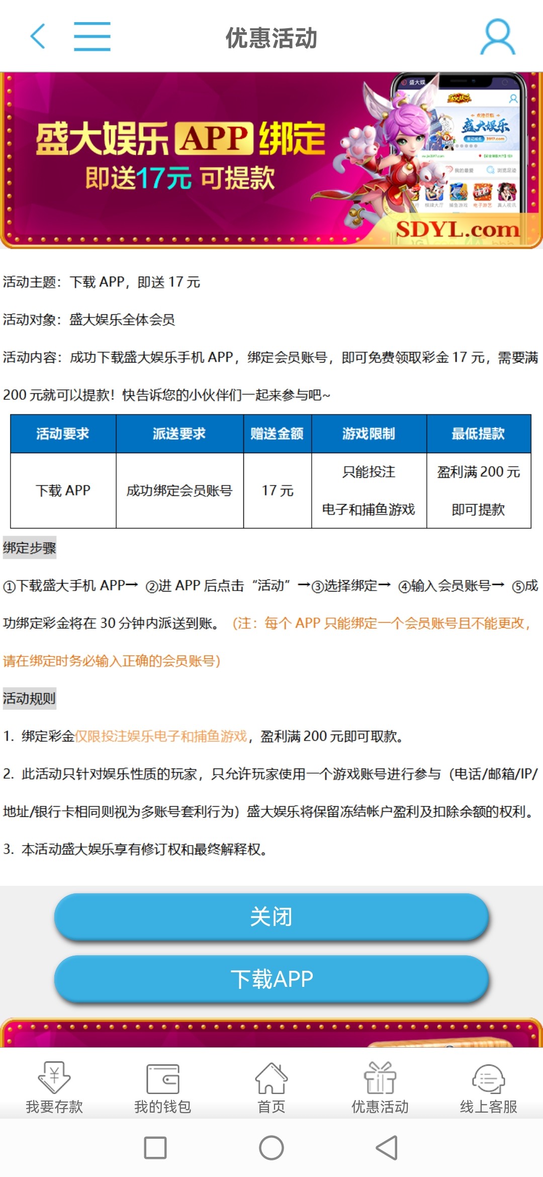 阿离 你直接在活动里往下翻,他会让你下载一个APP,要在那里面绑定,我刚弄不知道给不给