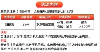 新用户注册绑卡 联系在线客服领取18元彩金 游戏限制体育电子棋牌捕鱼 最低提款200元
