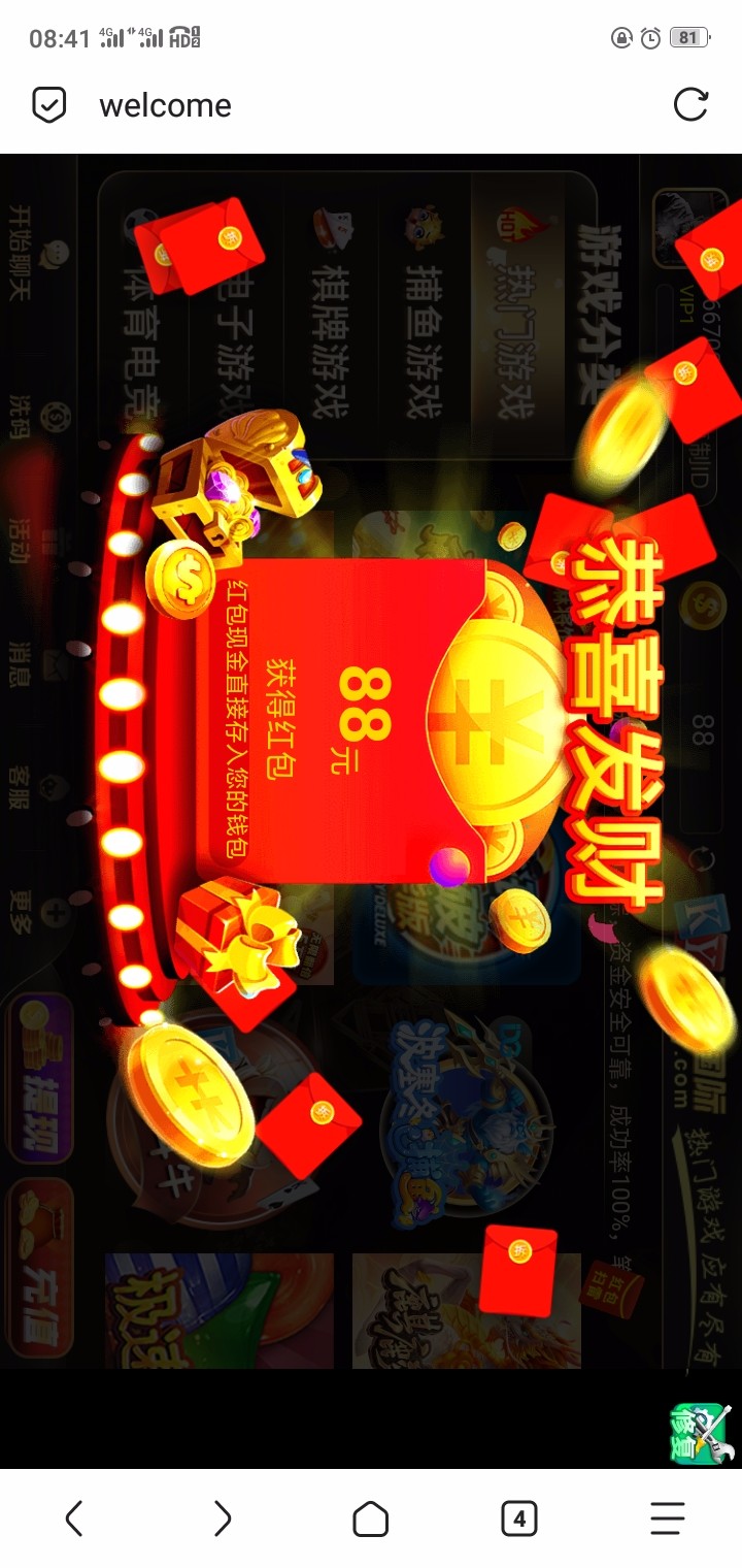 这种模版,我一猜注册就有88,果然注册就有个注册彩金,88送了,就是领取那个金额感觉有点马赛克
