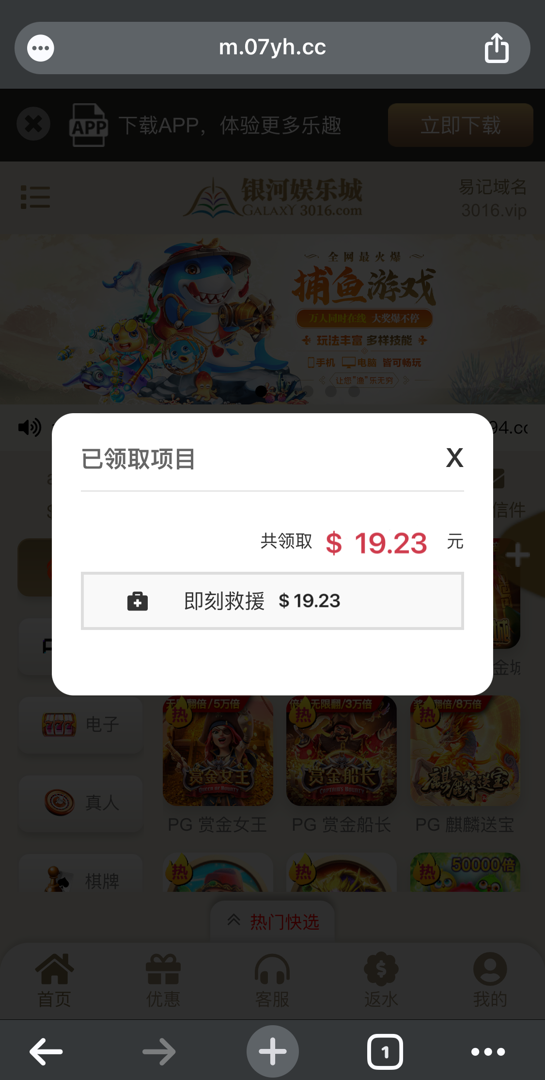 银河有回馈上号就看见