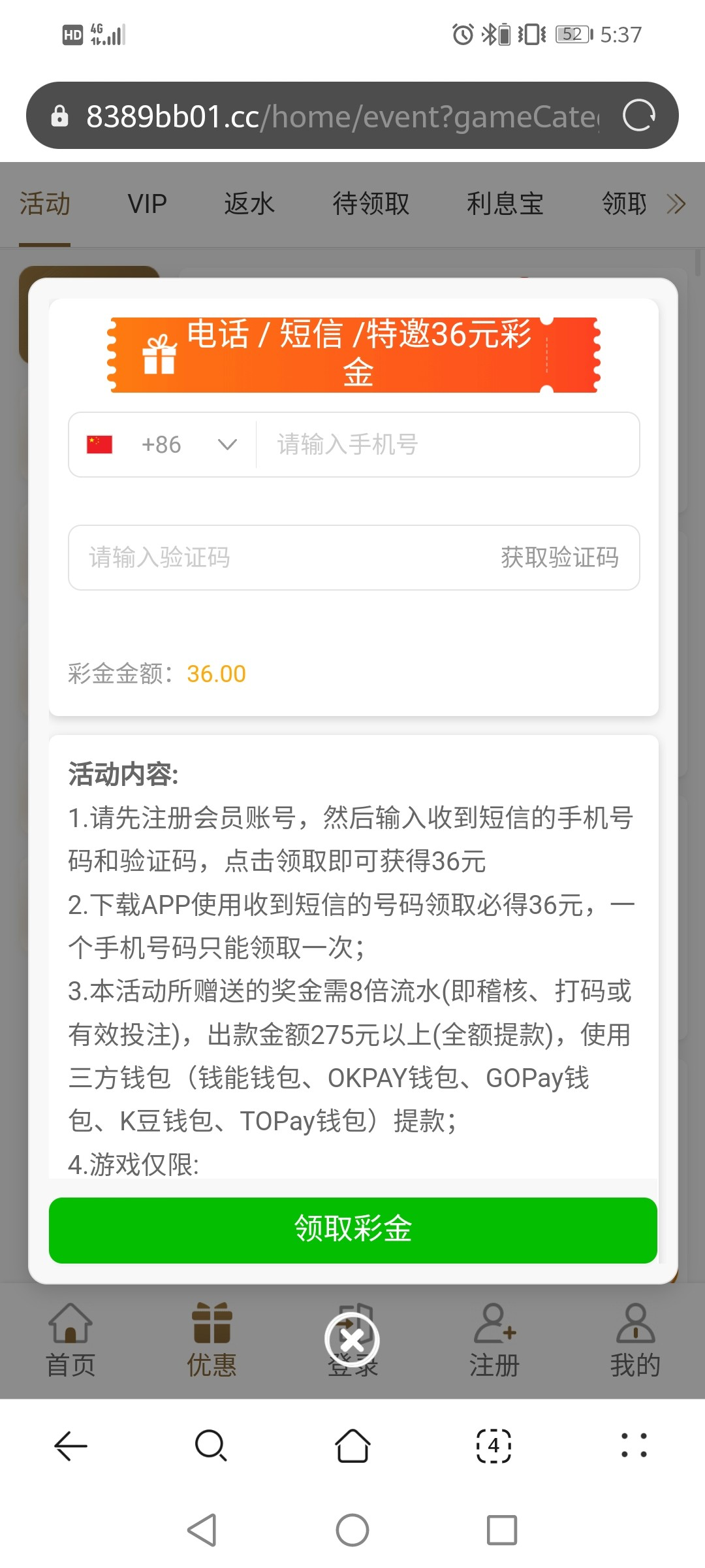 特邀碰瓷,新用户注册活动里面去碰瓷特邀36彩金,可以先看看下方短信有没有,没有可以碰瓷试试吧,具体自测切记勿充值。
