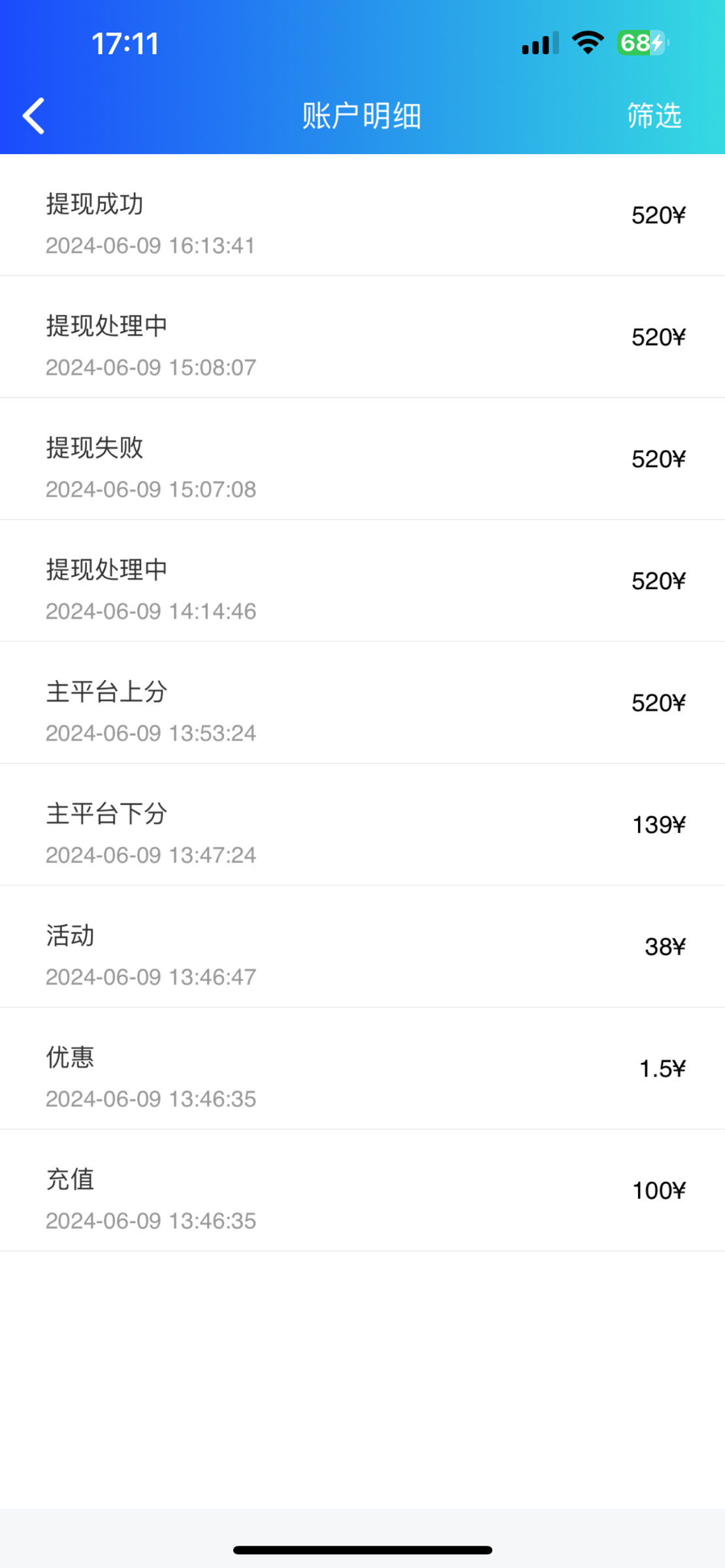 ,要银行卡提现,最后又打输回去了。