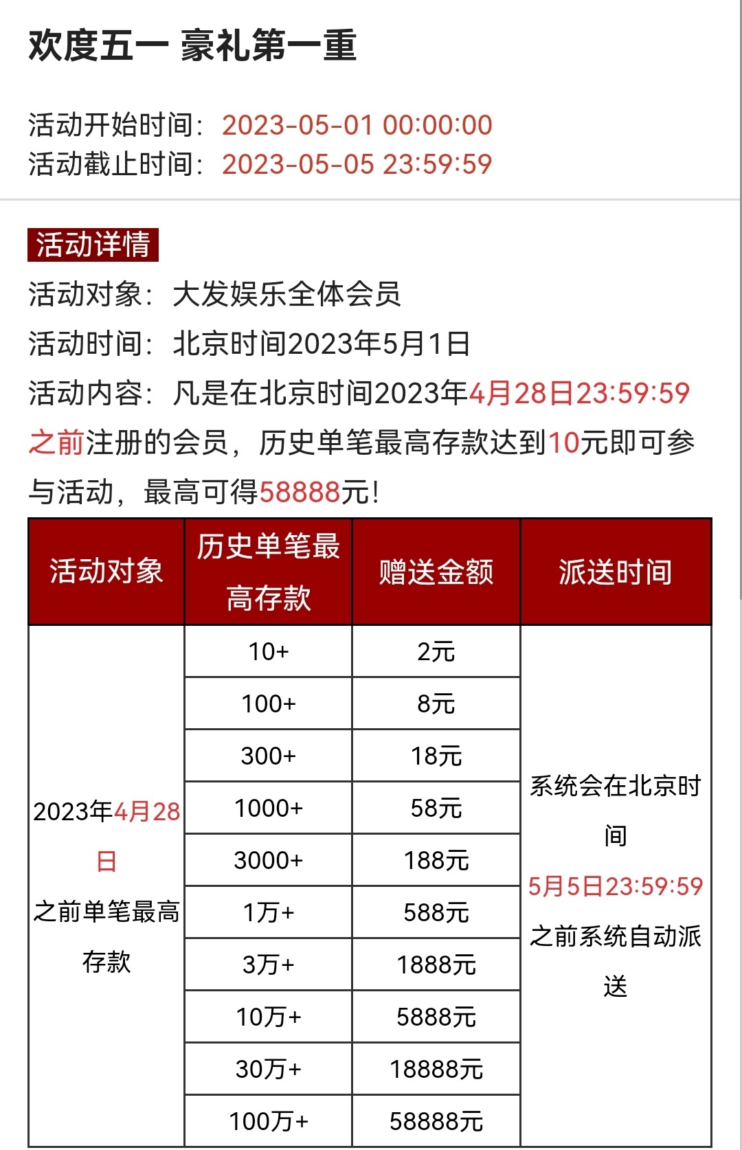 老用户看看下方图片,符合要求的自己去申请五一回馈彩金,具体自测切勿充值