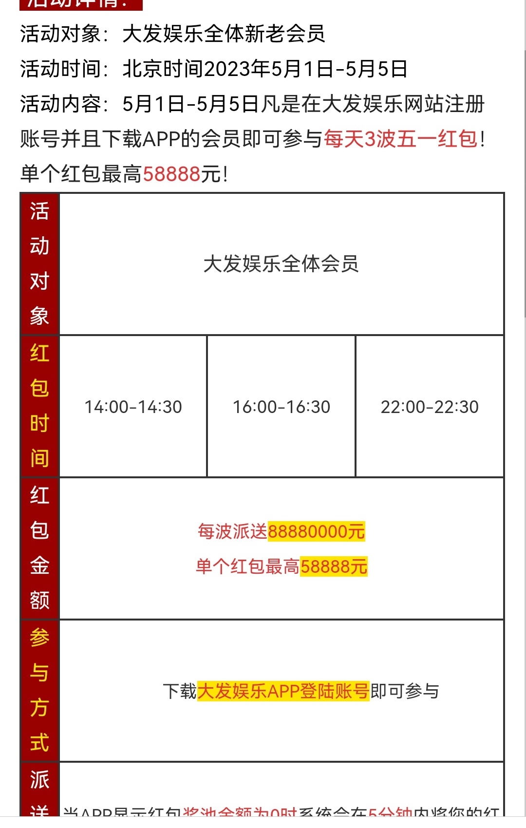 【大发989】——(五一回馈)