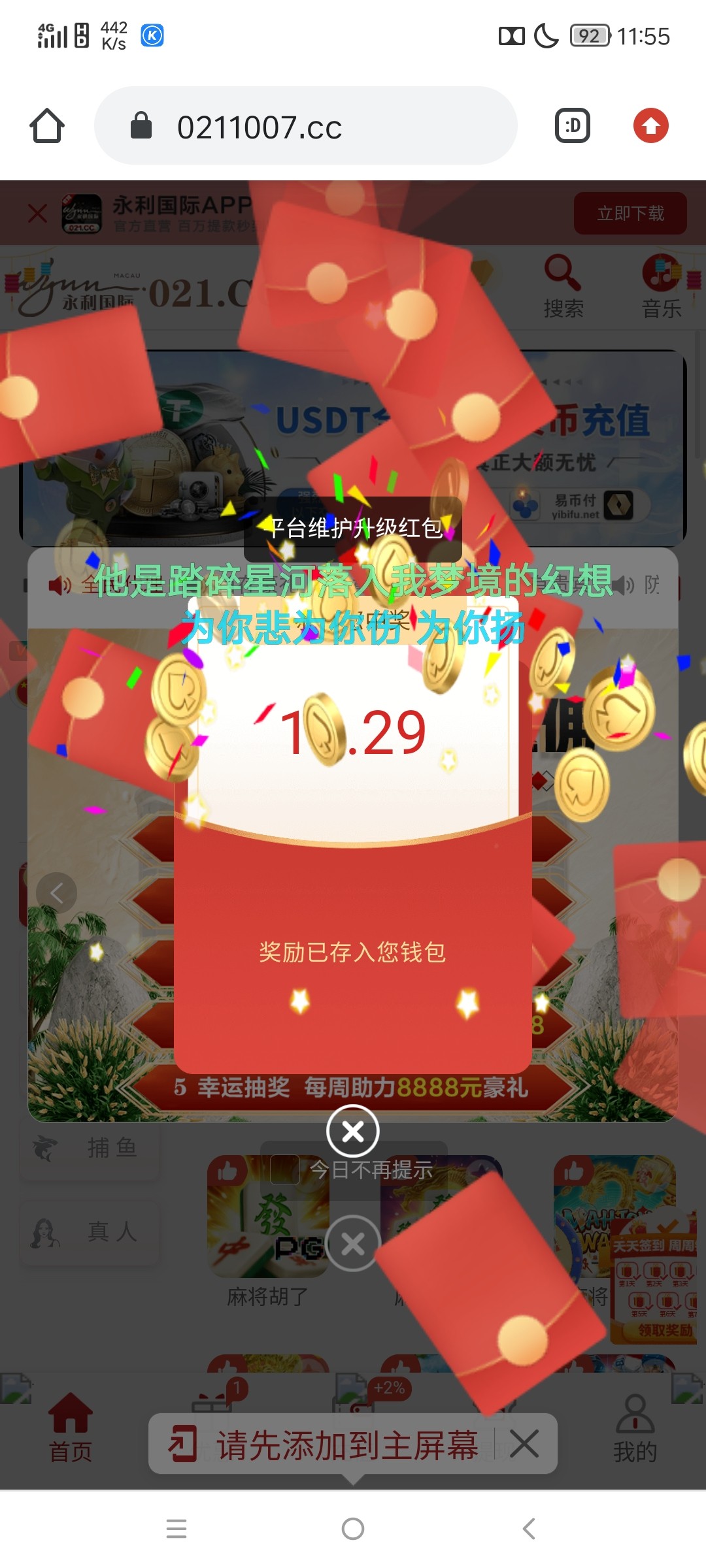 系统维护升级彩金,下载APP,登录自动有红包弹出来,出款自测!