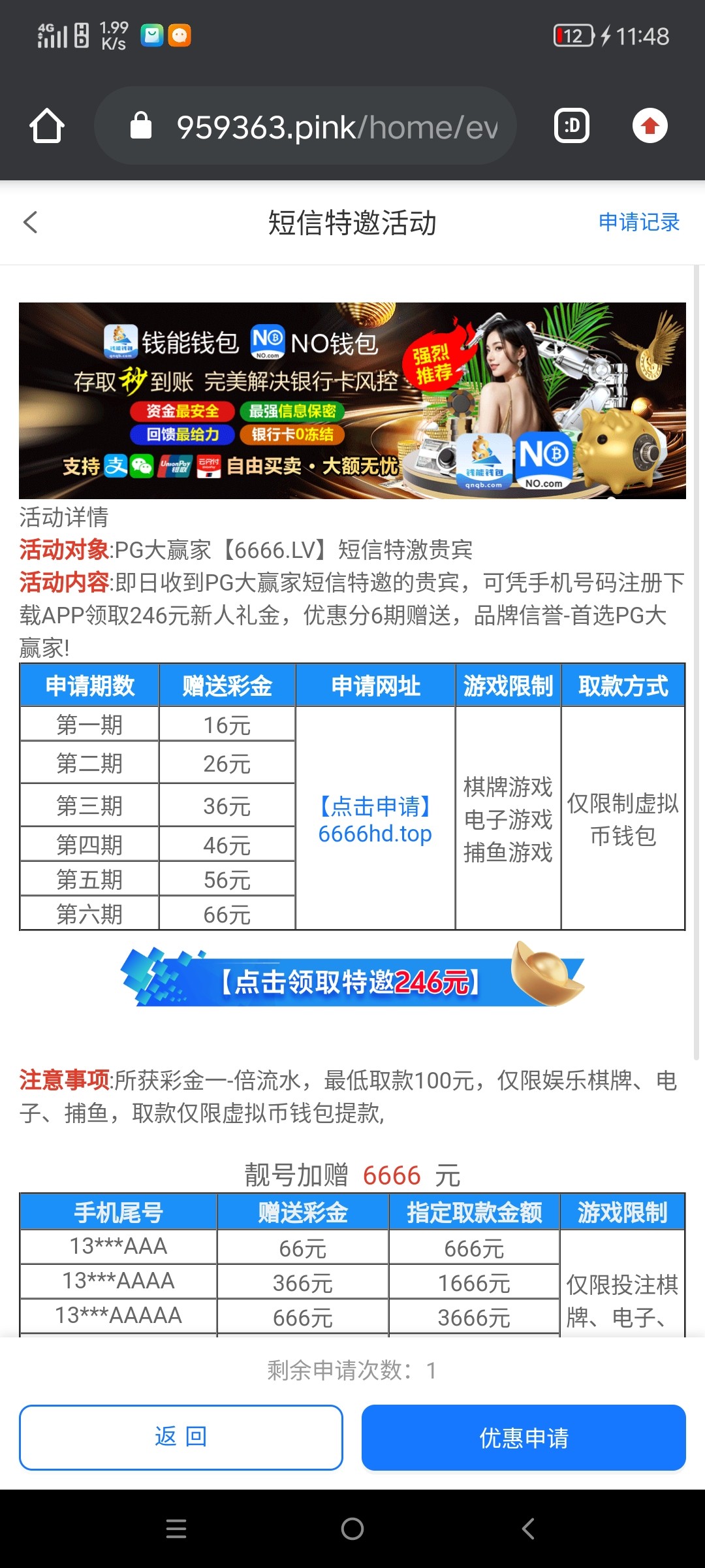 手机号码特邀玩家自助申请共6期,免费的,出款自行测试!