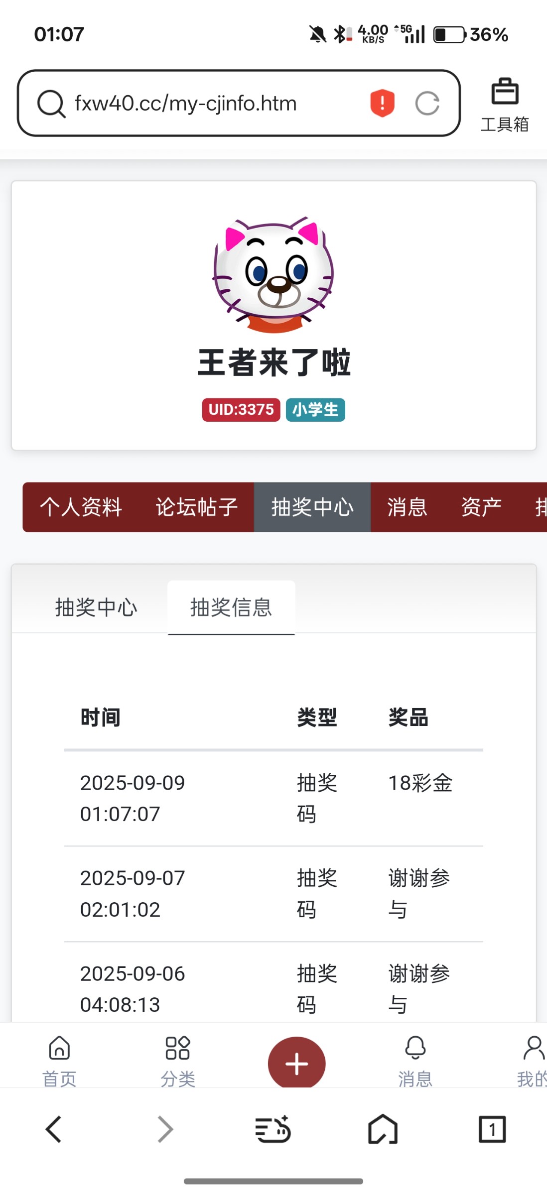 抽奖中了18彩金送到非凡账号 pm02468