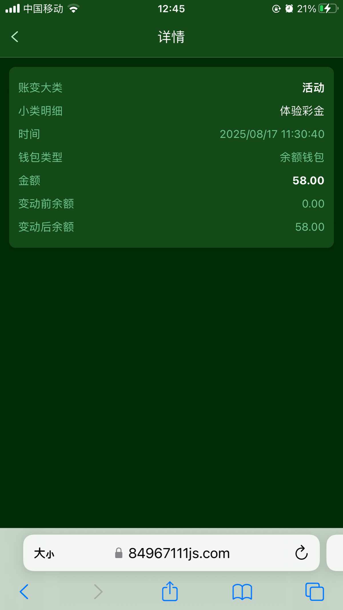 前几天注册的,今天打电话来说有58彩金,提了250不知道到不到,澳门金沙849