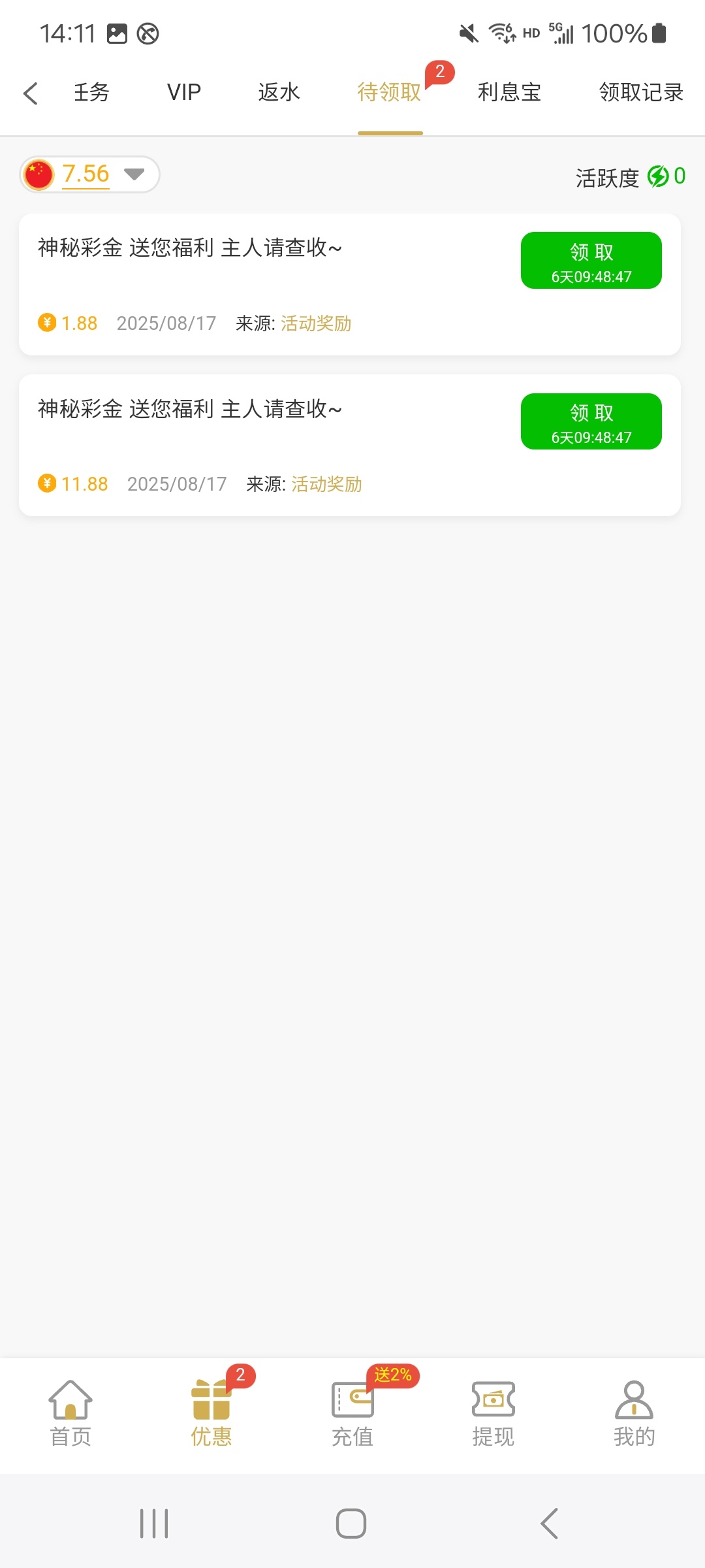 有号的登录看看,优惠里面自助领取。