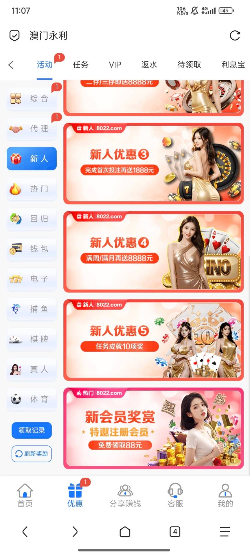 特邀碰瓷,活动里自助领取88