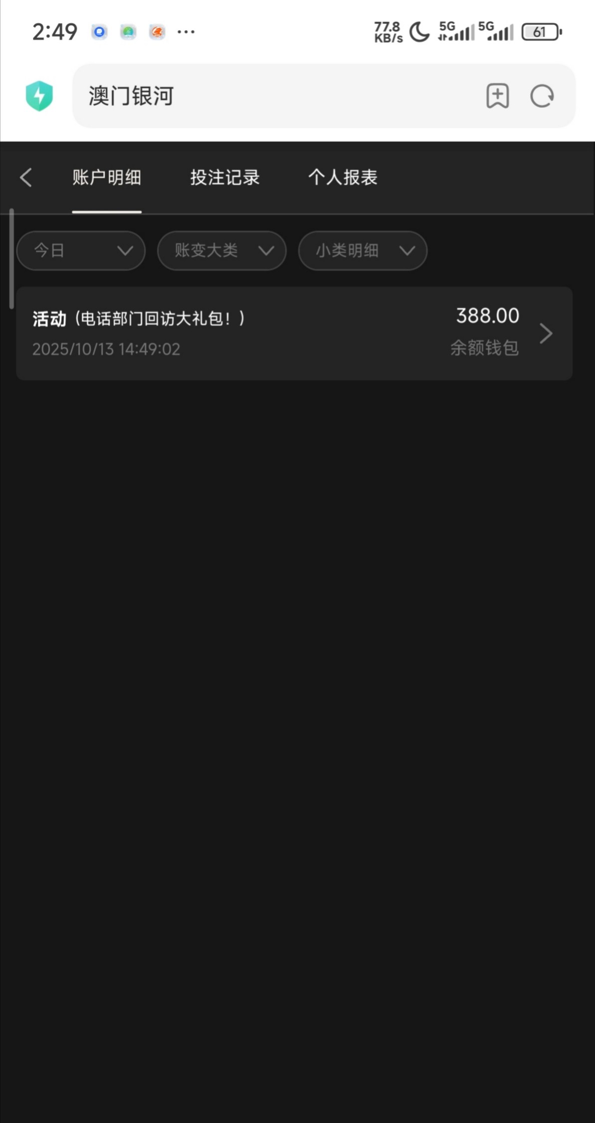 澳门银河3016送回访彩金388,注册充值过的都可以去申请试试