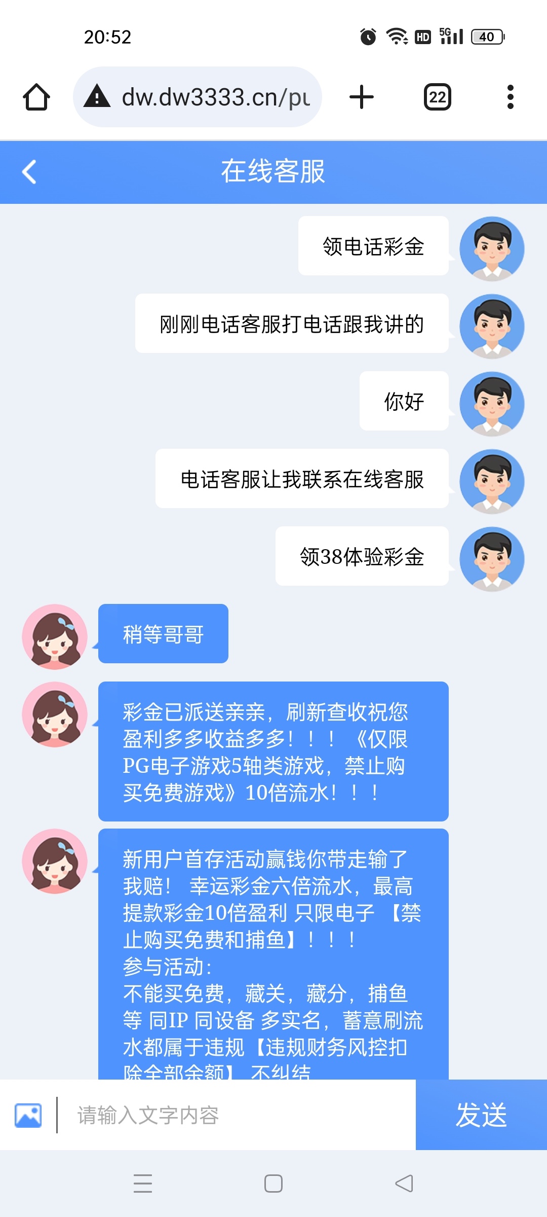 注册了之后等电话,也可以直接找客服试试,38彩金10水,打到180打不上去了。已吃100 。