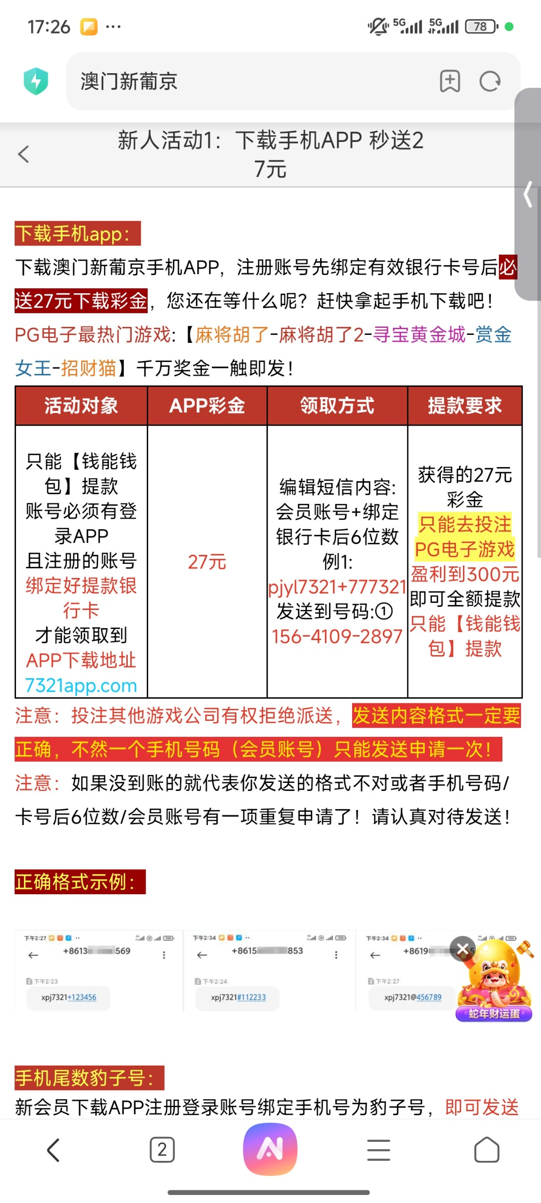 送个毛线,纯属骗注册充值的,发短信也不给