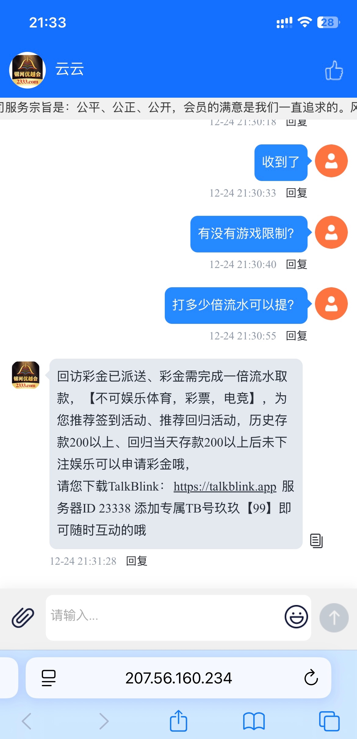 【银河2333】—✅—回访彩金