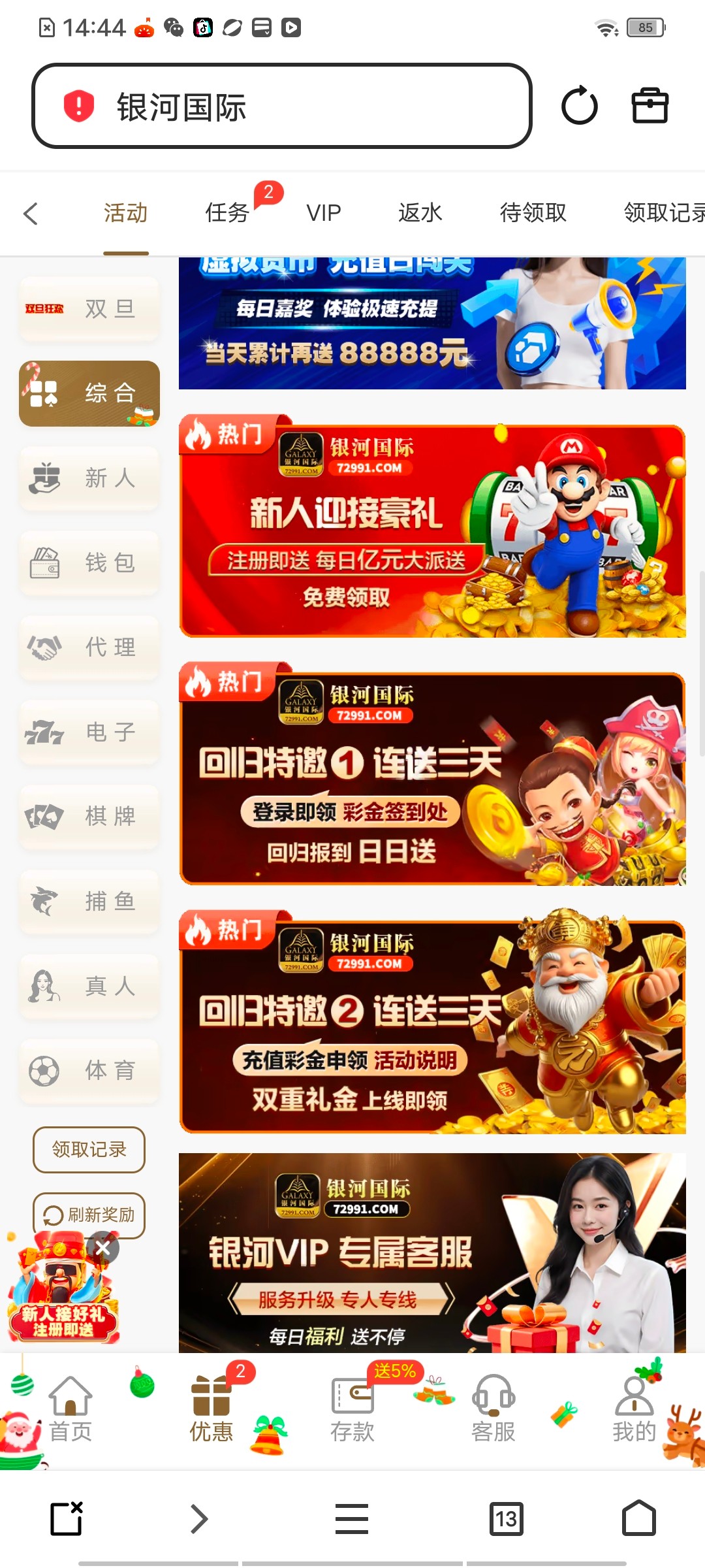 银河国际特邀回归连送三天彩金
