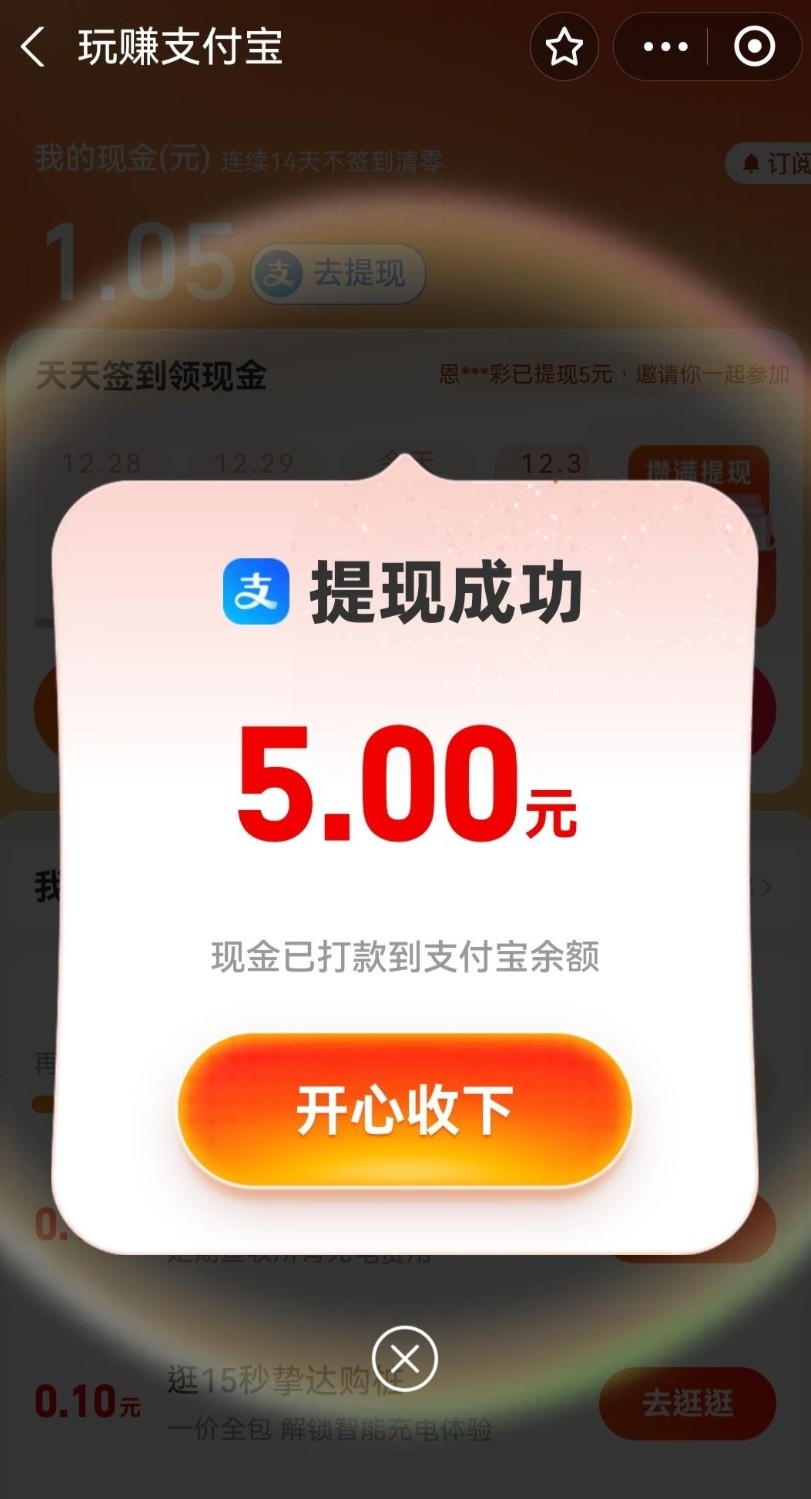 【支付宝 12月最新白嫖5元】