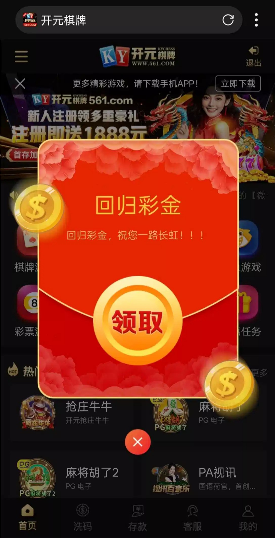 注册不用绑卡,等四五天登陆自动弹18红包,不限制游戏,一百提