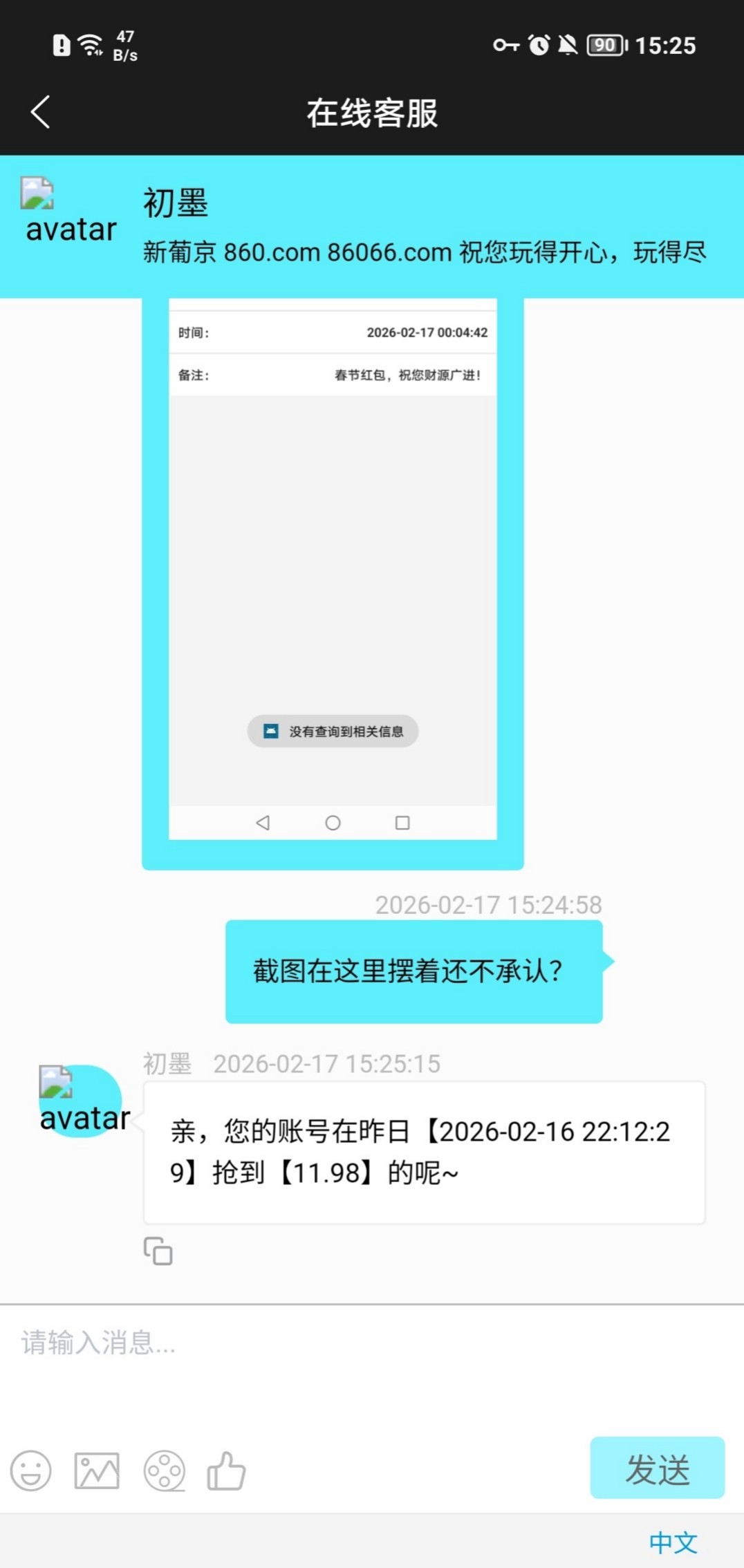 曝光860链接黑台,晚上抢到10.86,早上找客服申请加赠,死不承认