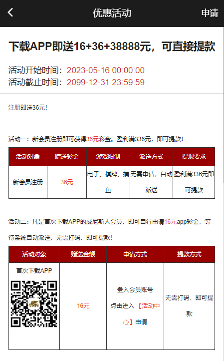新用户注册绑卡下载app24小时内自动赠送36彩金 下载app的16彩金优惠里自助申请 游戏和提款限制自行查看优惠