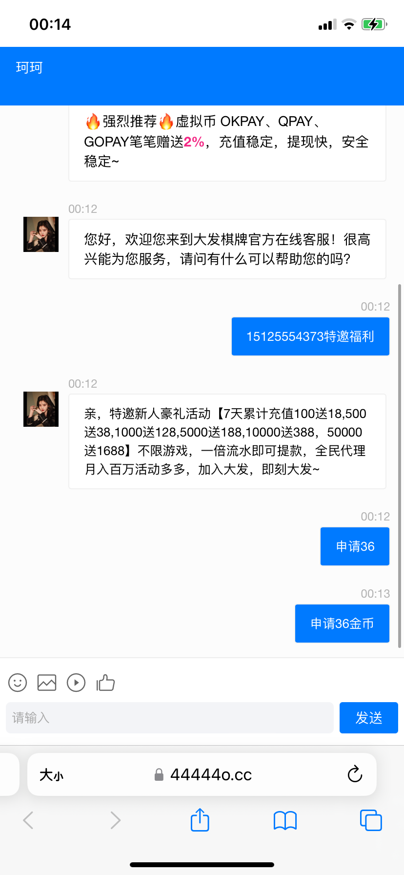 也可以复制客服链接换其他浏览器进去申请