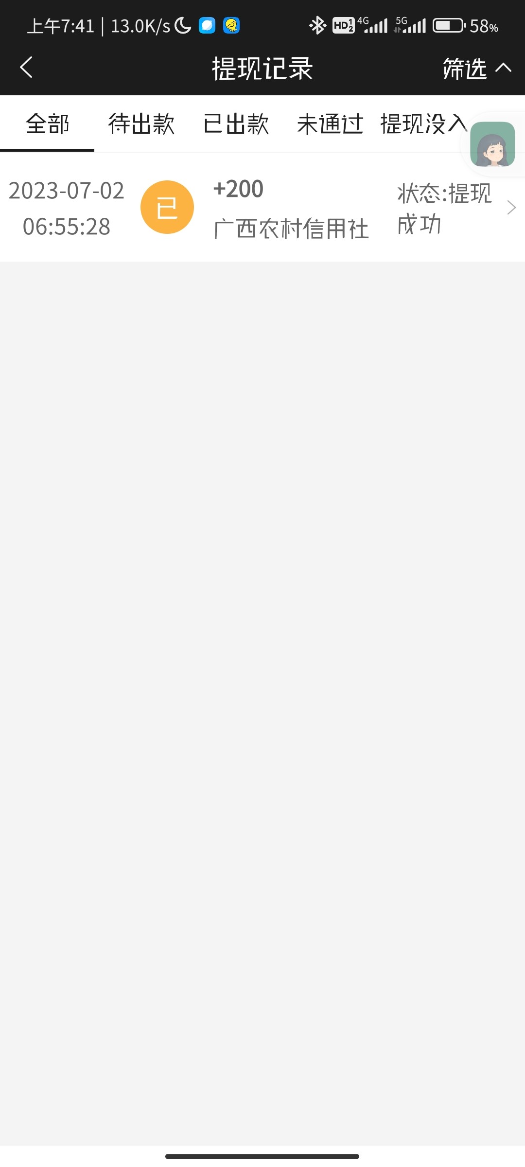提款200到账