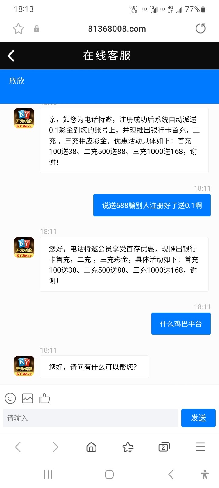 我也接到了,说了588,注册送0.1