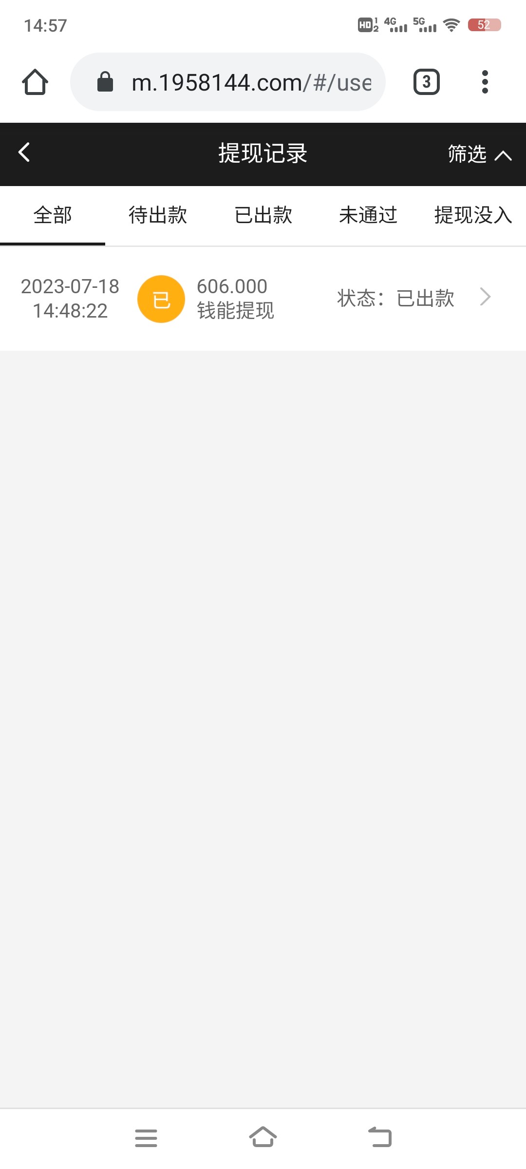 说明一下我不是狗托,我翻短信发现的,点进去登号就有88彩金的,打了几个小时才到550提现的